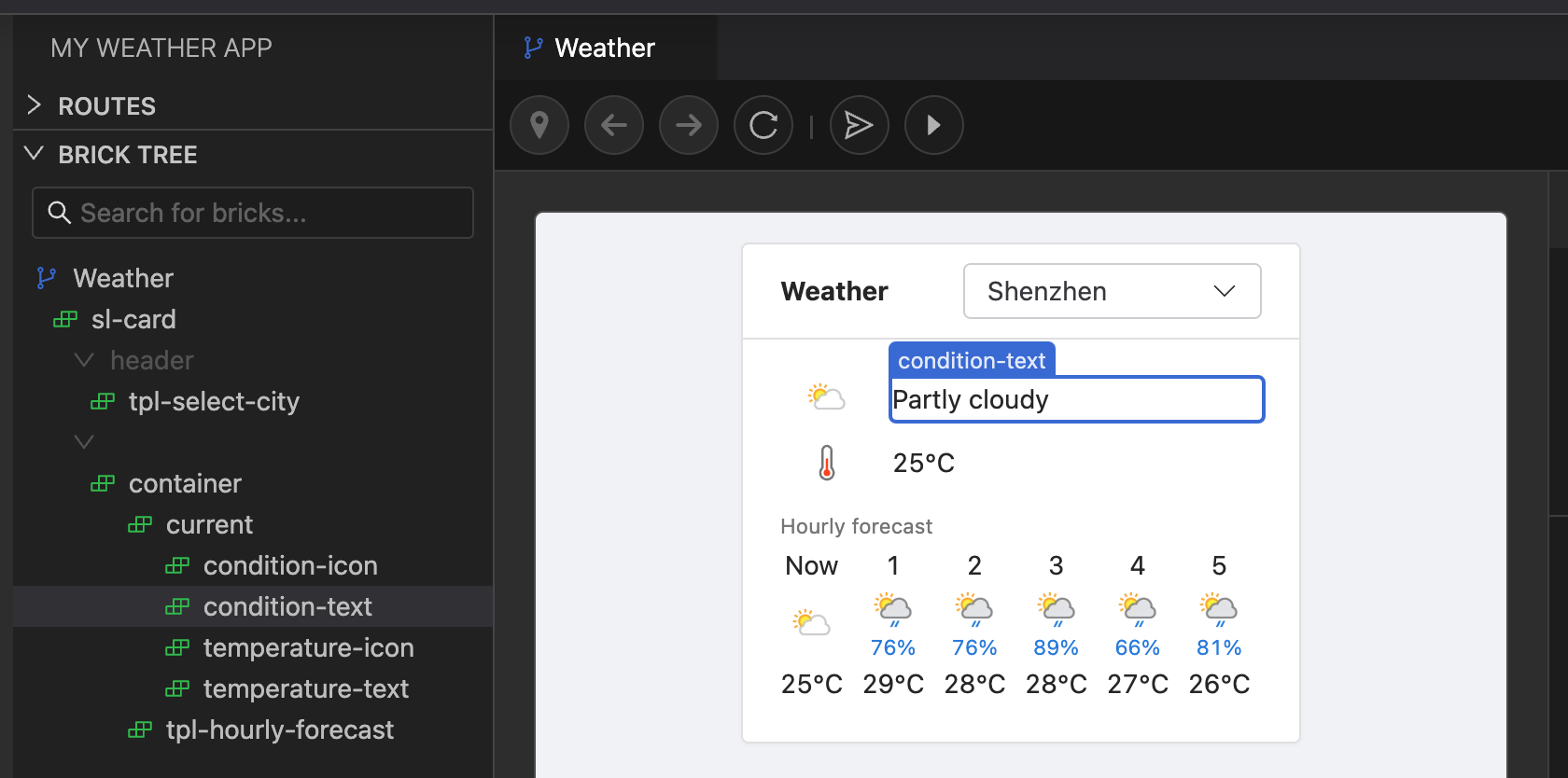While bricks with properties describe the UI, you can define actions in response to events triggered by user interactions, and manage page states by simple JavaScript expressions.
